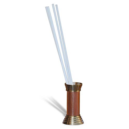 | Straw holder for Indian tableware handcrafted by the artisans of Mathura in north India! Copper and brass together give ethnic look to these straw holders. Put them on the dining table when you invite your friends and family for an Indian dinner. Use copper cleaners available in the market to retain shiny finish. Do not put copper utensils in dishwashers as acids contained in the soap may tarnish the copper ware permanently. ...Read more |